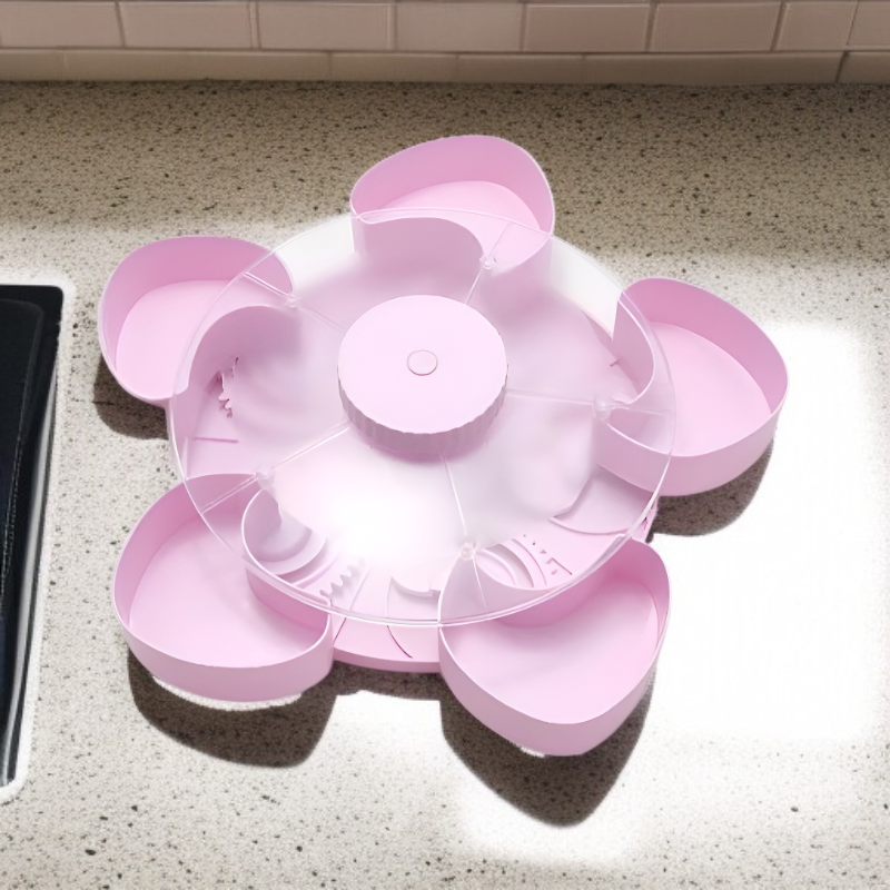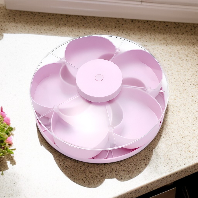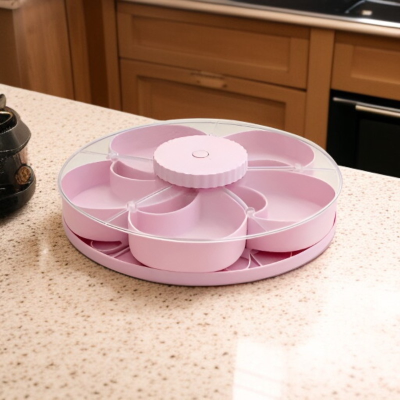 ● 360° rotating design allows easy access to snacks from any angle, making sharing and entertaining more convenient and fun. ● Multiple divided compartments keep different snacks separated, ensuring flavors stay fresh and organized for every occasion. ● Stylish and modern look enhances your table setting, perfect for parties, family gatherings, or everyday use. ● Durable and food-safe materials provide long-lasting use, making it suitable for both dry and wet snacks. ● Compact and space-saving, the tray can be easily stored or displayed, helping to keep your kitchen or living room tidy.