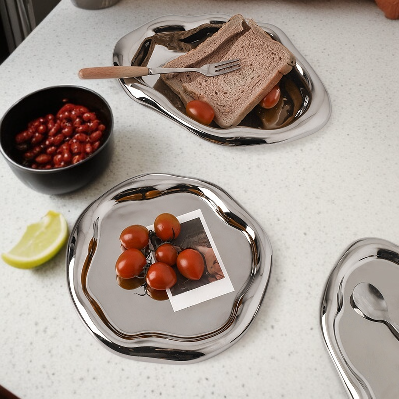 Color: Tray Long Strip Splash White, Tray Round Splash White, Tray Irregular Small Splash White, Tray Irregular Large Splash White, Tray Long Strip Silver-plated, Tray Round Silver-plated, Tray Irregular Small Silver-plated, Tray Irregular Large Silver-plated